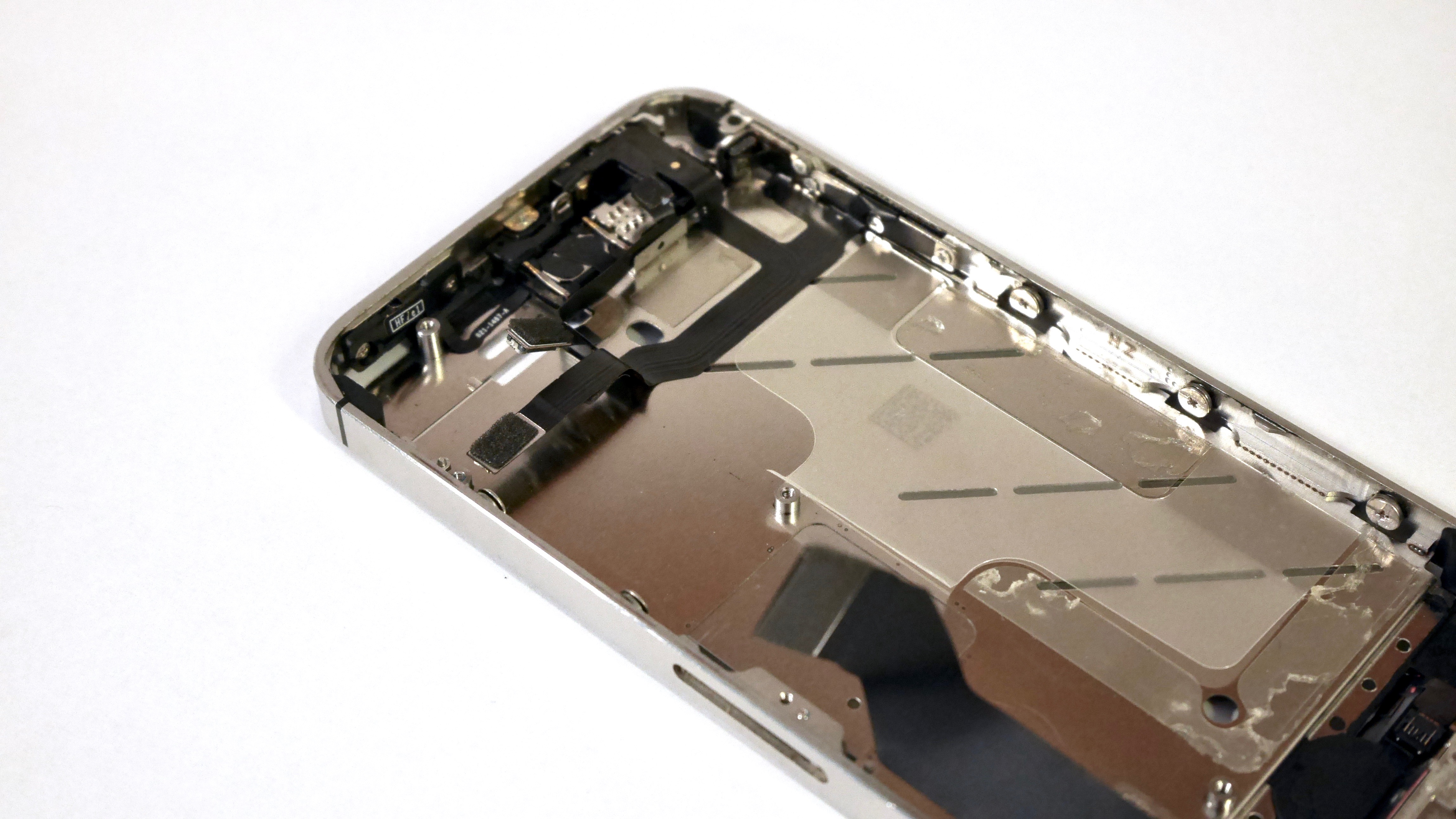 Herausforderung: Es war ganz schön schwierig, den Ladestecker vom Gehäuse zu entfernen, da an ihm auch die Kopfhörerbuchse und Lautsprecher hängen.